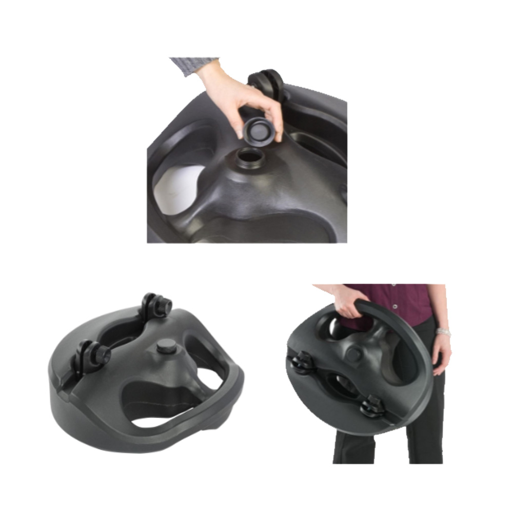 This sidewalk sign with water/sand base can take rigid insert up to 10 mm thick. This double sided sandwich signage displays top loaded printed graphics with screw-knob mounting to secure panels in place in a stable manner.