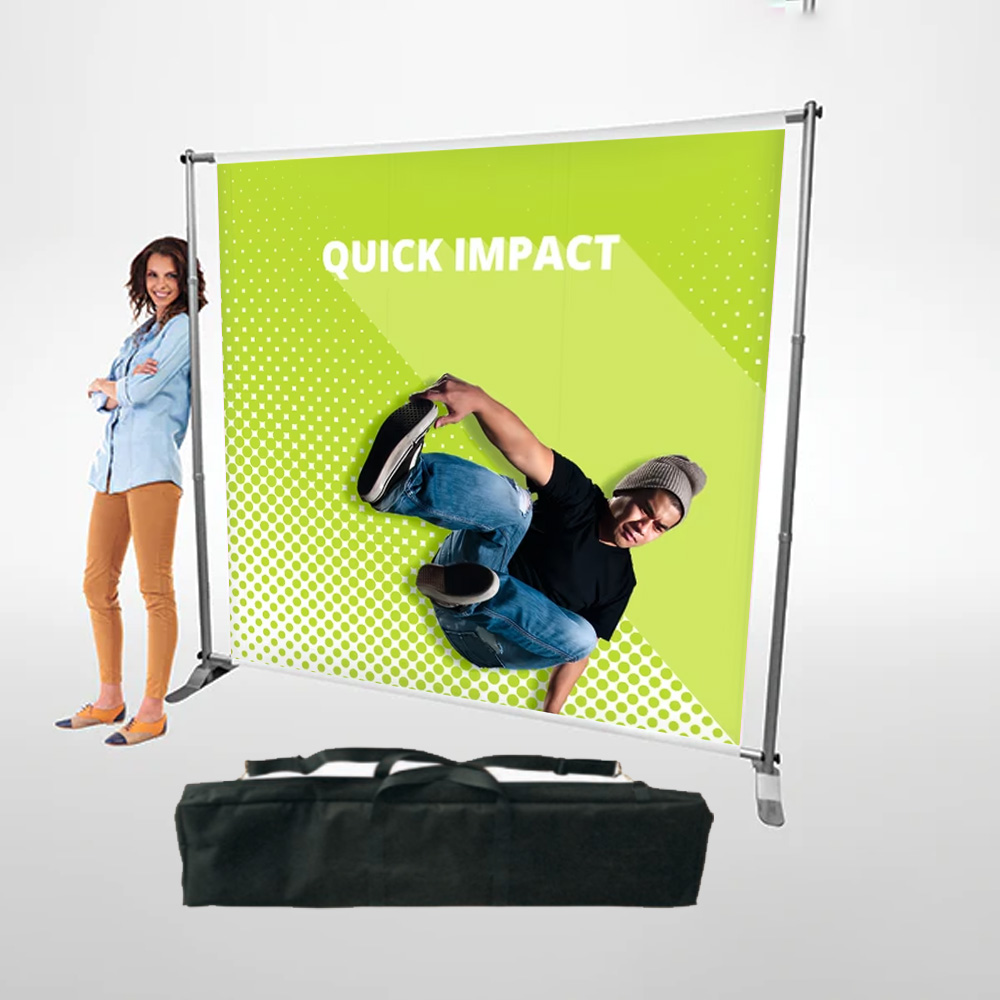Telescopic vertical and horizontal poles fit different dimension graphics for different applications. Ideal solution for banner or dye-sub fabric and good for double sided graphic application. It’s only 17 lbs, as the major material is light weight aluminum. Strong carry bag makes it easy for carrying out and transportation.